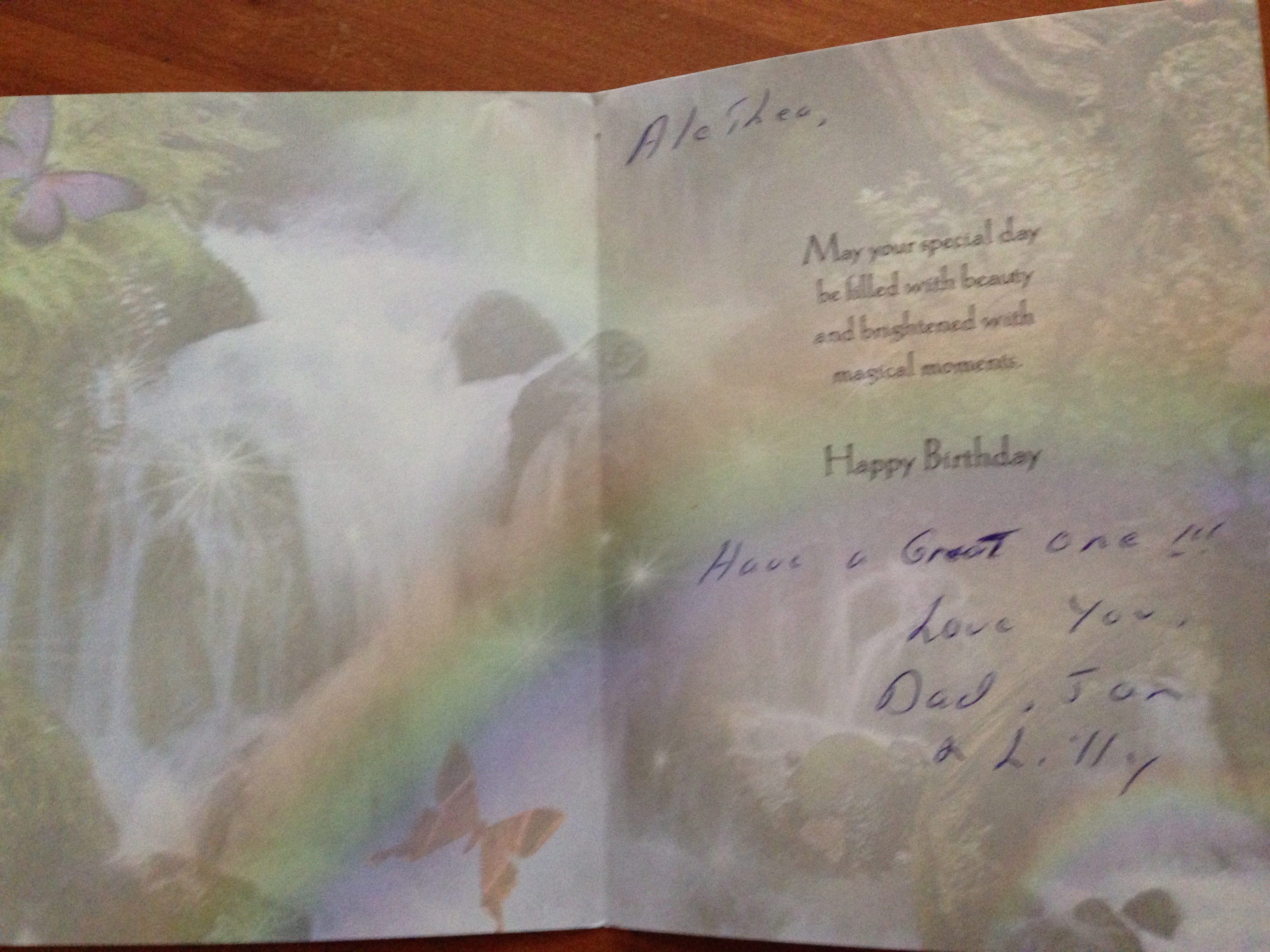 I have lost the years of child, but I still feel her secret longing to be loved, and to love, her forbidden father, even though I have allowed that love to be freed. Although love should not come with conditions, this one did, it still does. But they are not my father’s conditions, they never were. His love, I have come to realize, was always there, waiting to be seen. I hear it in the vibration of his voice when he calls me each week to find out how I am doing, I read it in the words he sends on my birthday and Christmas, and I feel it in his embrace when we erase the three thousand miles that still keep us apart.