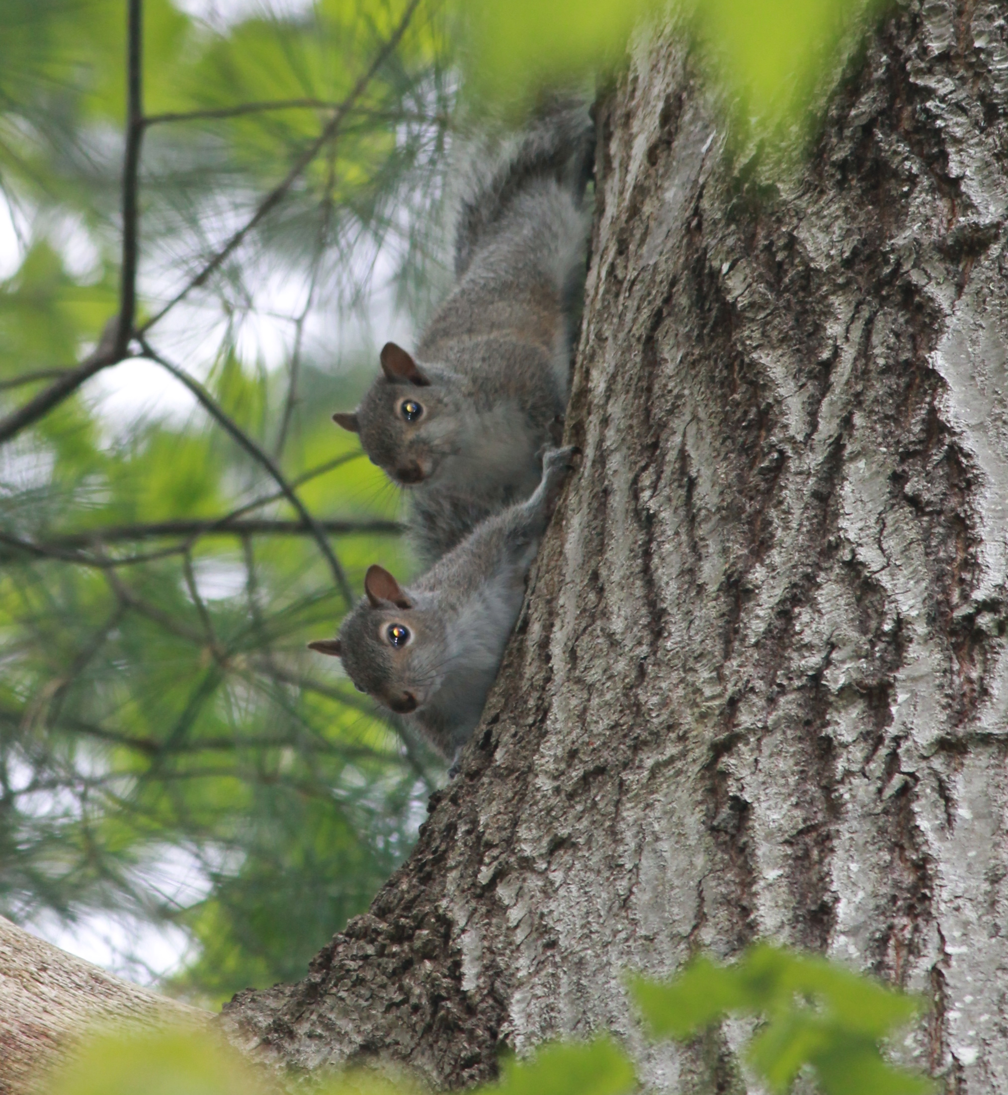 Until the mosquitos got the better of me. Then I took the camera and walked. Instead of the hummingbird, I captured two squirrels in the act of love…or haste.