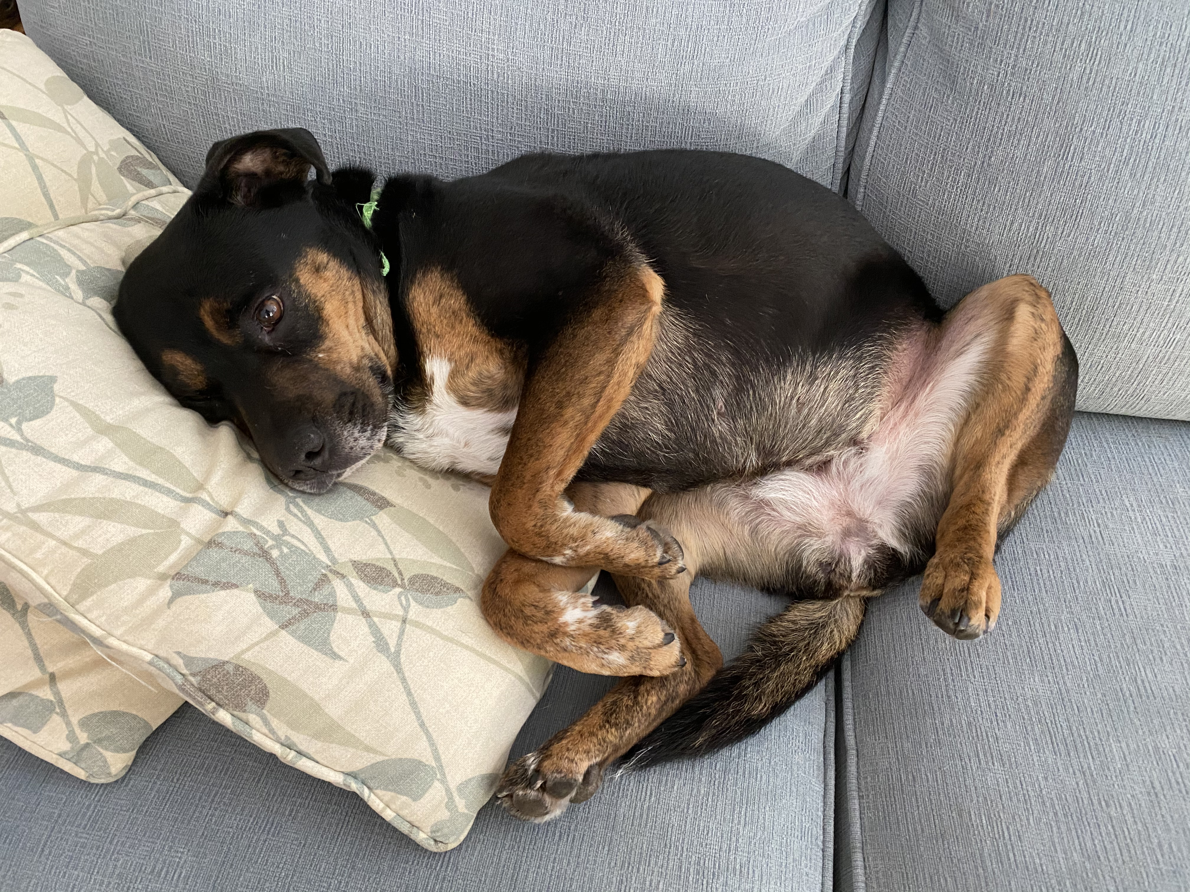 Rosy, on the other hand, appears quite content with her couch, and not too thrilled with a human invading the tiny space beside her. Soon enough I leave her to her nap, and head upstairs to my yoga room with my shadow (aka Zelda) at my heels.